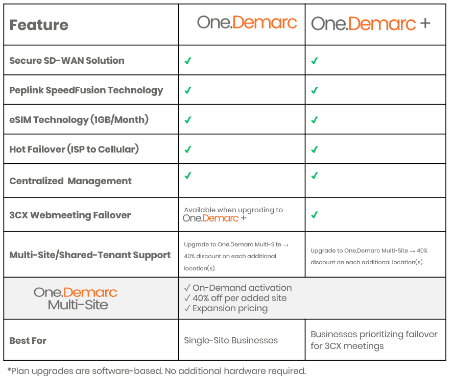 one.demarc includes an embedded eSIM that enables automatic failover to a 4G/5G cellular network during ISP outages. This ensures uninterrupted voice service and keeps your business communication running smoothly—no matter what.