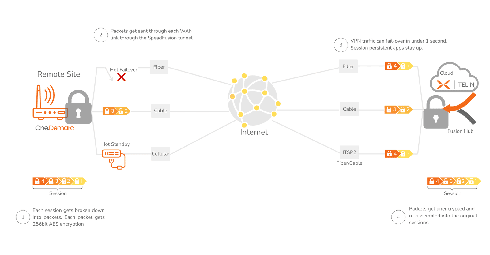 one.demarc uses SpeedFusion, a next-generation SD-WAN solution, to ensure secure, stable, and resilient data and voice transmission across all connections.